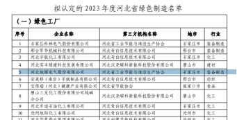 河北省工信厅9月18日公布了2023年度省级绿色制造名单,我公司获评省级绿色工厂,位列全省第5名。